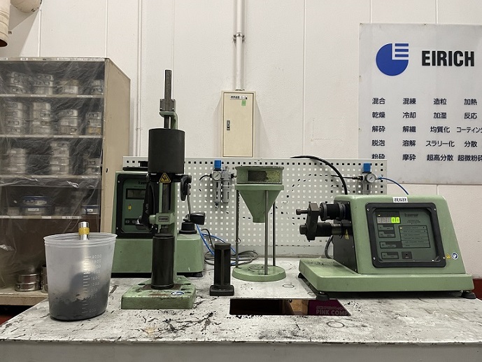 アイリッヒでは、独自の混合技術により原料に高い負荷を与えることで、短時間かつ均一性の高い混練が可能です。また、ミキサーサイズに対して搭載するモータの容量が大きいため、高粘度原料の混練も可能としています。