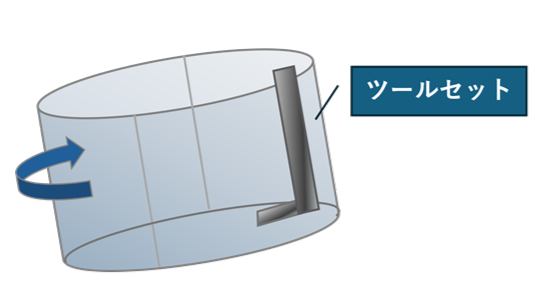 ①偏⼼した位置で撹拌するロータ⼯具(撹拌⼯具)