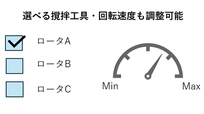ロータ工具(撹拌工具)の選択と速度調整が可能