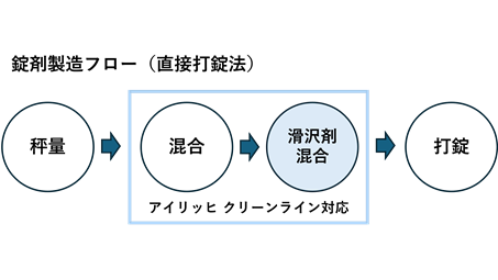 2. 滑沢剤の後混合 という 2 段階の混合工程 が必要です。